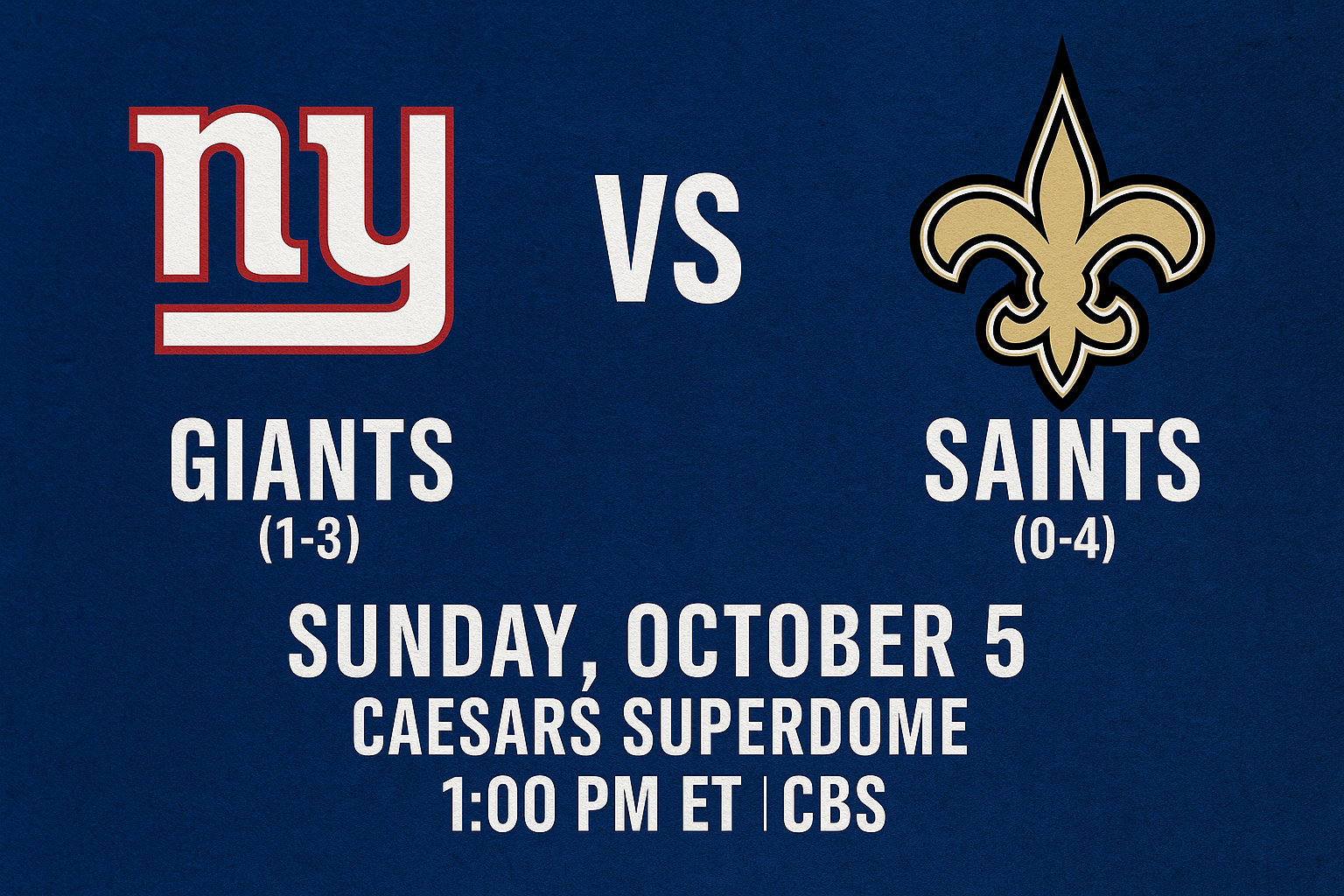 The New York Giants (1-3) will head to Caesars Superdome on Sunday, October 5, to take on the winless New Orleans Saints (0-4). Kickoff is set for 1:00 p.m. ET on CBS in what will be the 34th regular-season meeting between the two franchises. The Giants currently hold a narrow 17-16 edge in the all-time series.