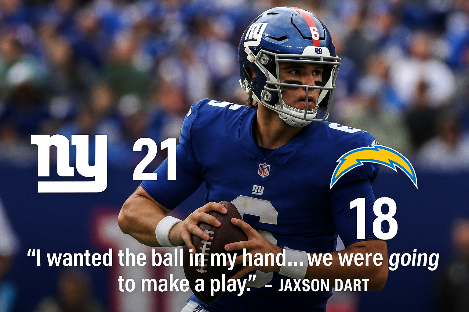 The Giants, battered by three weeks of disappointment, needed someone to spark belief. Dart, backed by a relentless defense, did exactly that in a 21–18 win over the previously unbeaten Los Angeles Chargers. It was New York’s first victory of 2025 and its first over the Chargers since 1998.