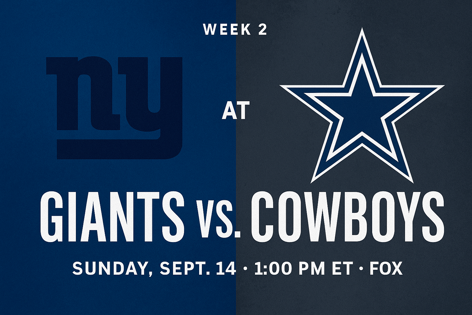 The New York Giants (0-1) and Dallas Cowboys (0-1) both enter Week 2 looking to rebound from opening-week stumbles. When the two NFC East rivals square off Sunday, Sept. 14 at AT&T Stadium, both teams will be seeking not only their first win but also a foothold in one of the NFL’s toughest divisions. Kickoff is set for 1:00 p.m. ET on FOX.