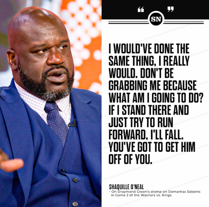 Sabonis got an up close and personal look at Green’s sole (sic) last night, after grabbing on to Green’s ankle in the scrum that followed the Malik Monk miss and ensuing rebound.